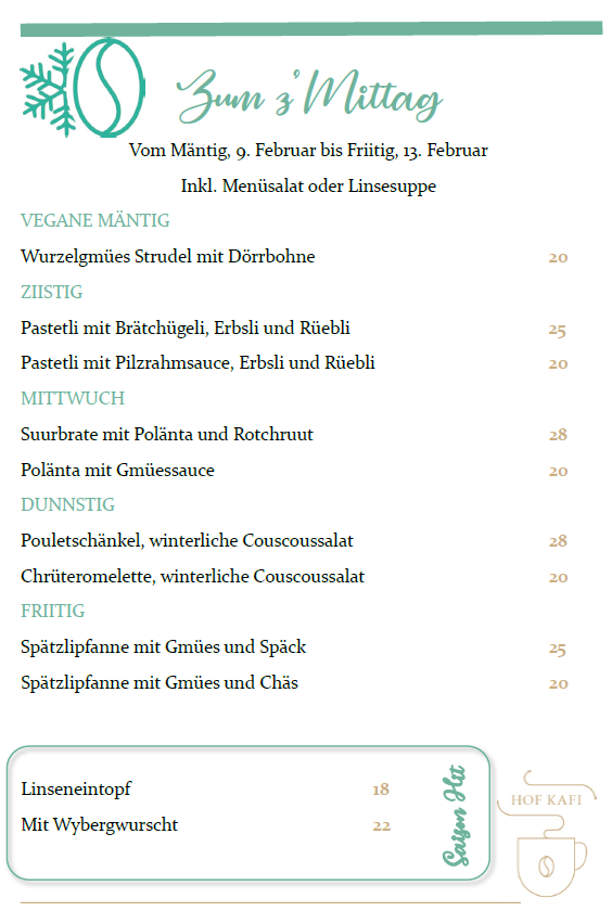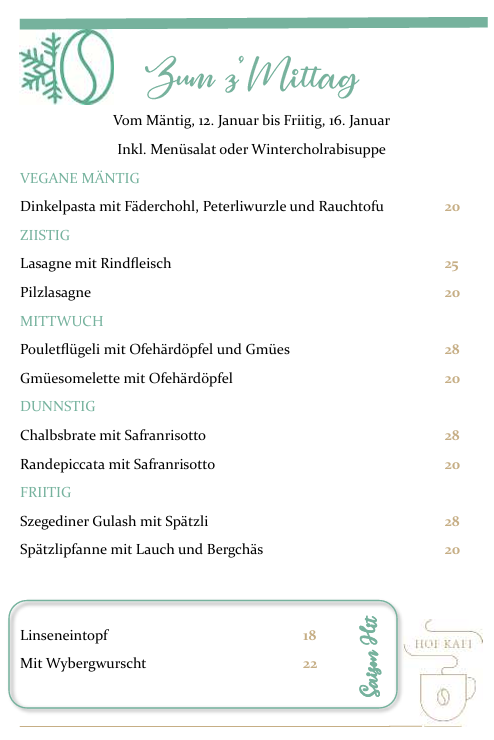 Jetzt ist es so weit: Unsere Speisekarte ab Januar ist frisch gepickt, liebevoll bebrütet und mit ganz viel Hof Kafi Herz.